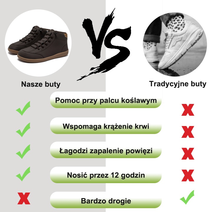 Nasze buty zostały zaprojektowane z myślą o ergonomii i zdrowiu stóp. Mogą one zmniejszyć nacisk na stopę, poprawić chód i zapewnić lepsze wsparcie, redukując w ten sposób ryzyko wystąpienia typowych problemów stóp, takich jak zmęczenie, bolesność i dyskomfort wywołane płaskostopiem.