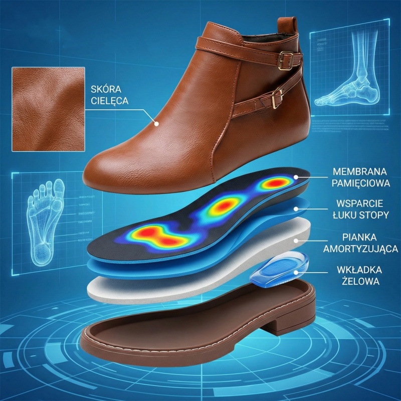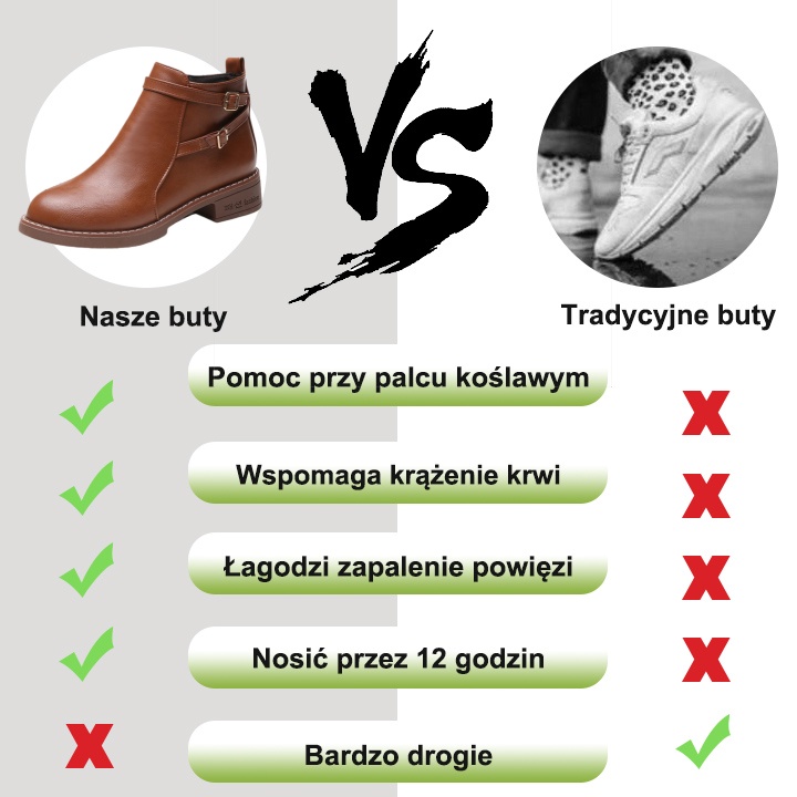 Nasze buty zostały zaprojektowane z myślą o ergonomii i zdrowiu stóp. Mogą one zmniejszyć nacisk na stopę, poprawić chód i zapewnić lepsze wsparcie, redukując w ten sposób ryzyko wystąpienia typowych problemów stóp, takich jak zmęczenie, bolesność i dyskomfort wywołane płaskostopiem.